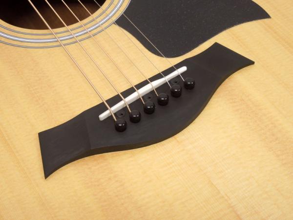 トップ材にはシトカスプルース、バック&サイド材にはサペリ合板を使用し、軽やかで暖かみのある歯切れの良いトーンが魅力です。
