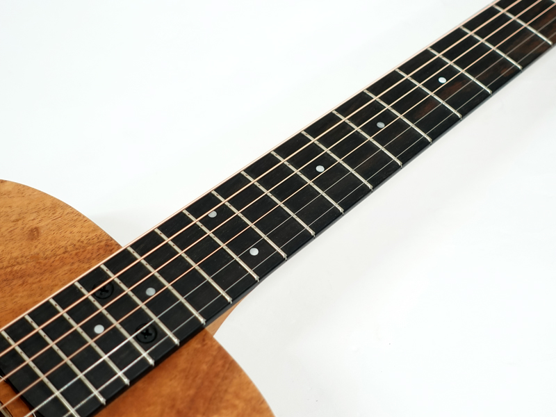 パーラータイプの可愛いベイビーテイラー、ハワイアンコア単板トップでサウンドもルックスも深みのある上位モデルです。