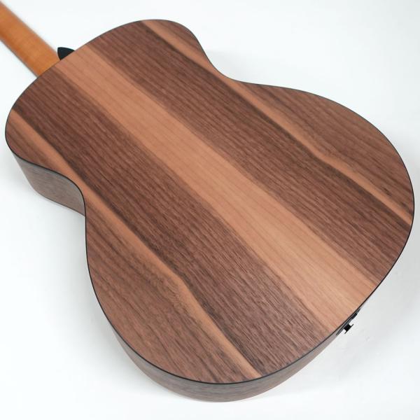 サウンドですが、ウォルナット材らしい明るく歯切れのある音色が特徴で、ピック弾きで気持ち良く前に飛んでいくサウンドが魅力的です。ストロークでもつぶれず、フィンガースタイルでも立ち上がりが良いので、様々な用途をカバーしてくれるでしょう。