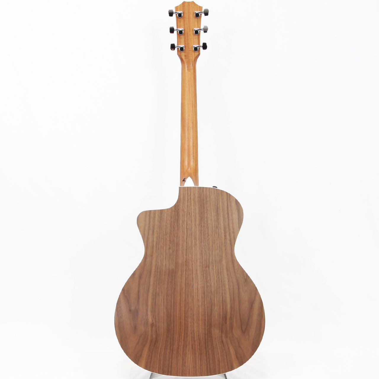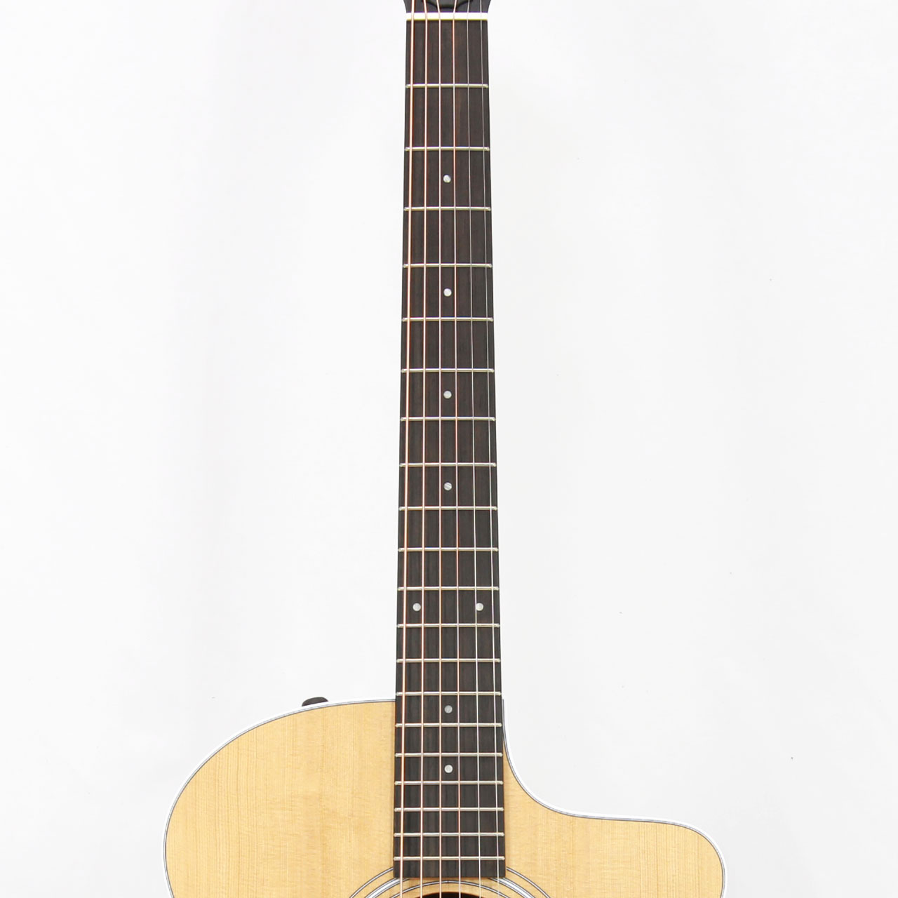 全体的な仕様としましては、トップ材はトリファイド・スプルース、サイド&バック材にレイヤード・ウォルナット、マホガニー材ネック、弾きやすさを追求した約43mmナット幅の細身のテイラー・ネック、エボニー材ブリッジ&指板、アメリカ製上位機種と同じES2ピックアップシステム搭載、専用ギグケース付属と本格的な音楽活動にも応えられる十分なスペックを兼ね揃えております。