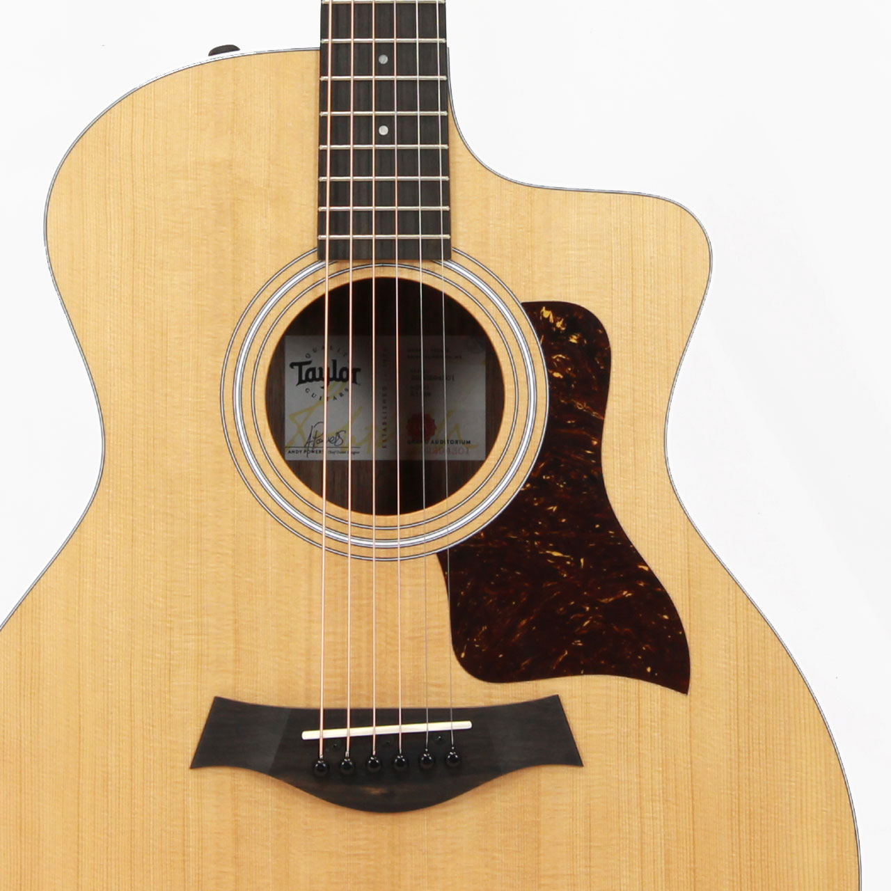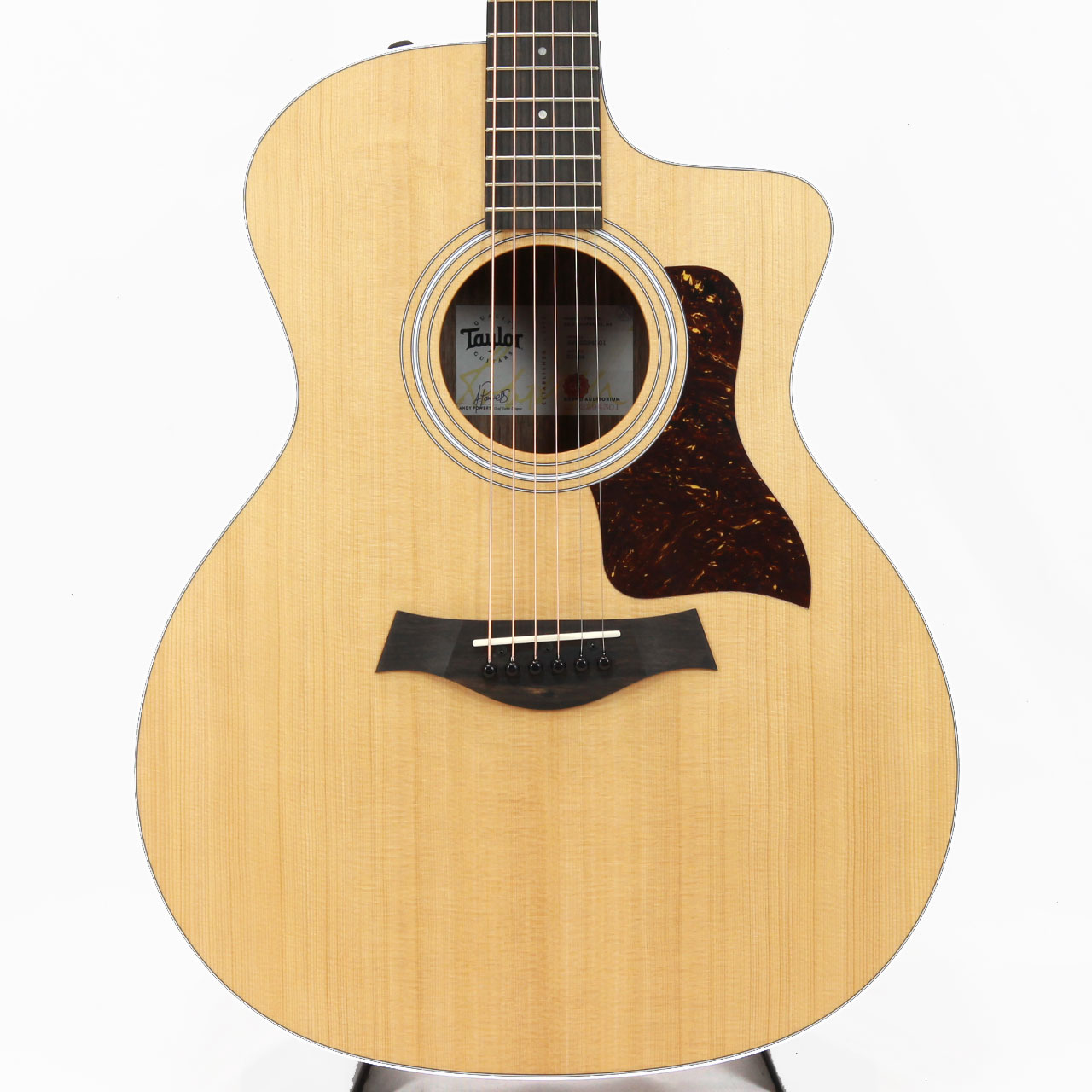 こちらは最新仕様で、トップ板がトリファイド加工されたスプルース単板、サイド&バック板がウォルナットに変更された新仕様の214ce。抜けが良く低域の広がりも豊かで、弾き語りにはピッタリなサウンドとなっております。