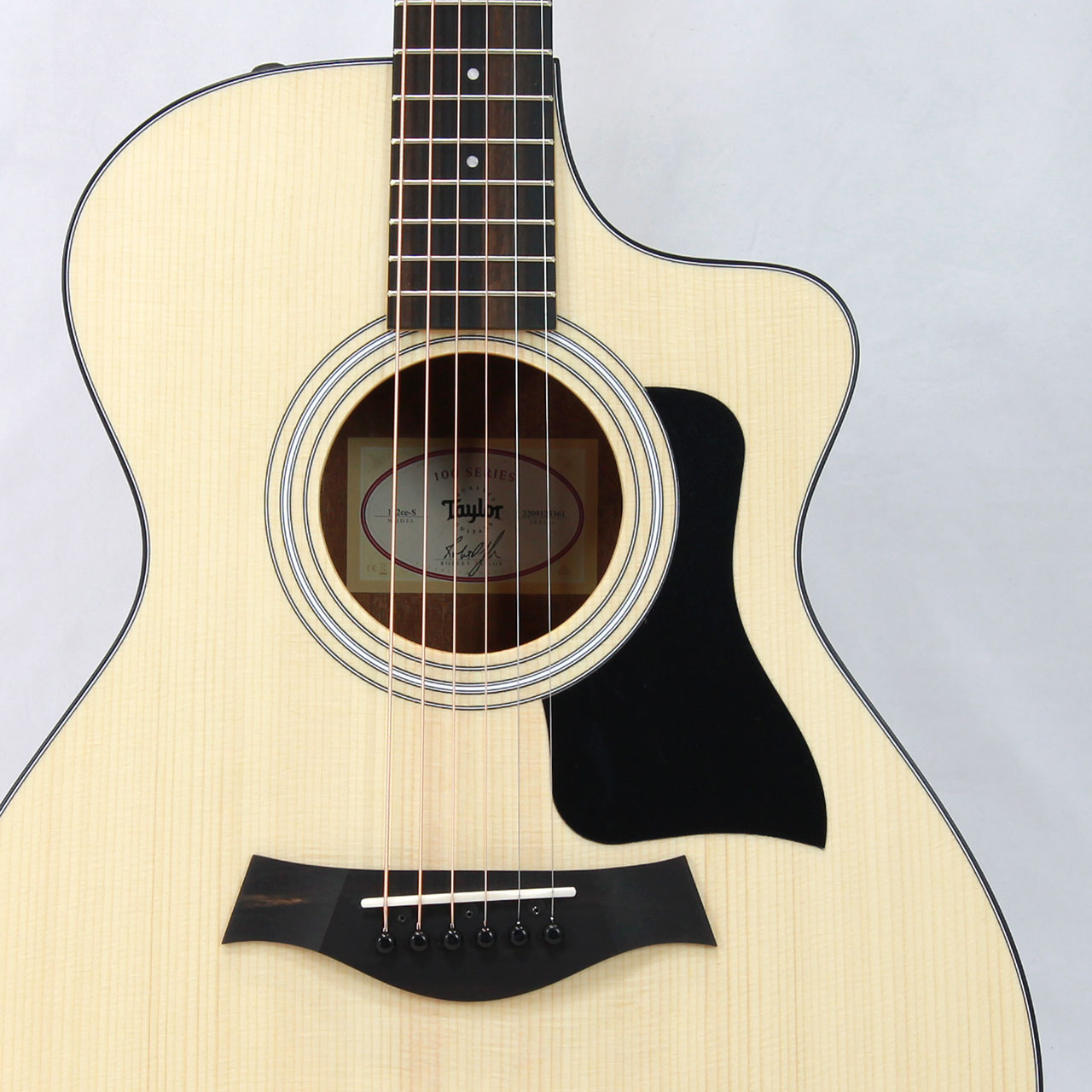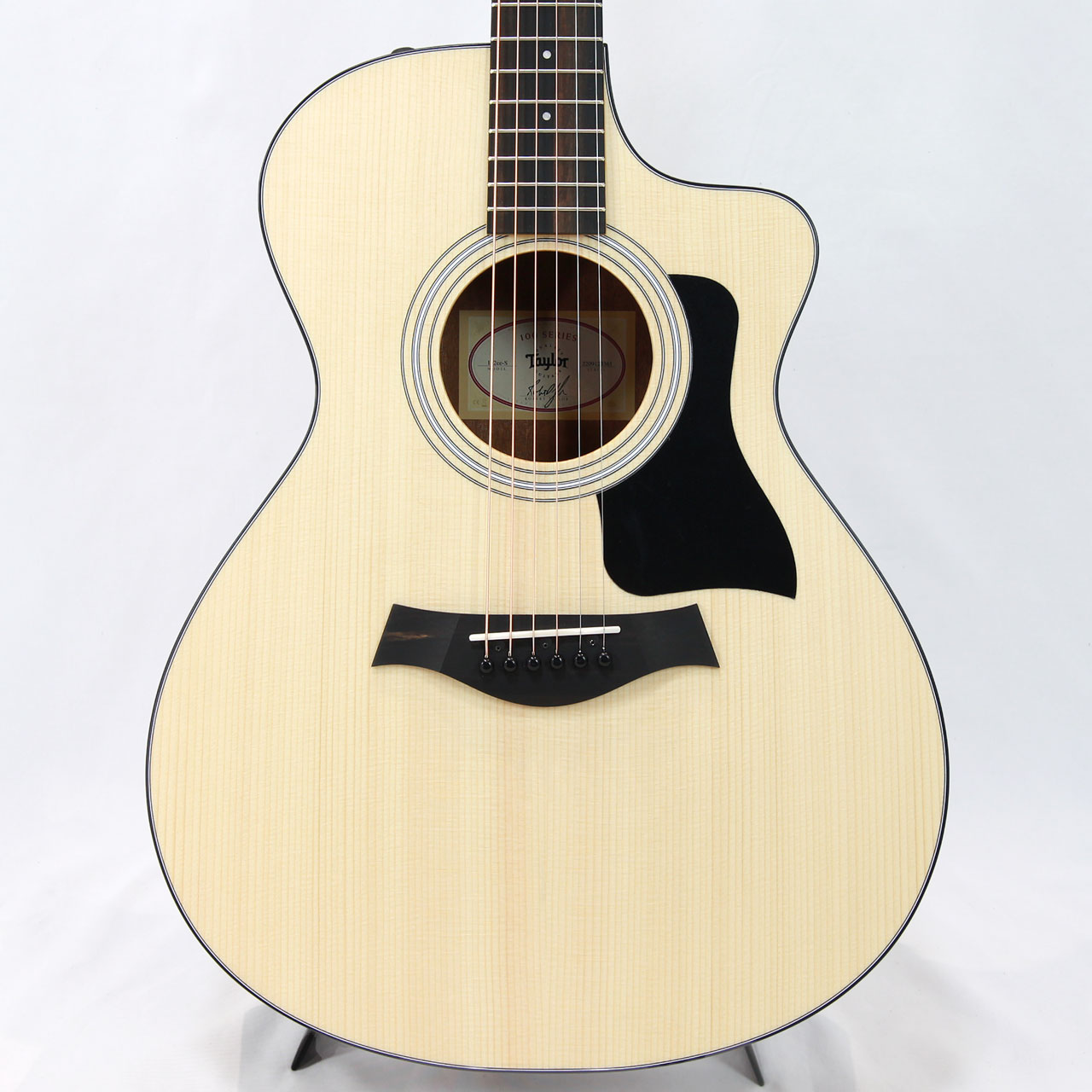 こちらはテイラーのエントリーモデルと呼べる100番台に新しく追加された、小振りなグランド・コンサートボディが採用された112ce-S。114ce-Sに比べてボディが小振りで抱えやすくスケールも短く押さえやすいので、お身体の小さな方や手の小さい方にも扱いやすいモデルとなります。