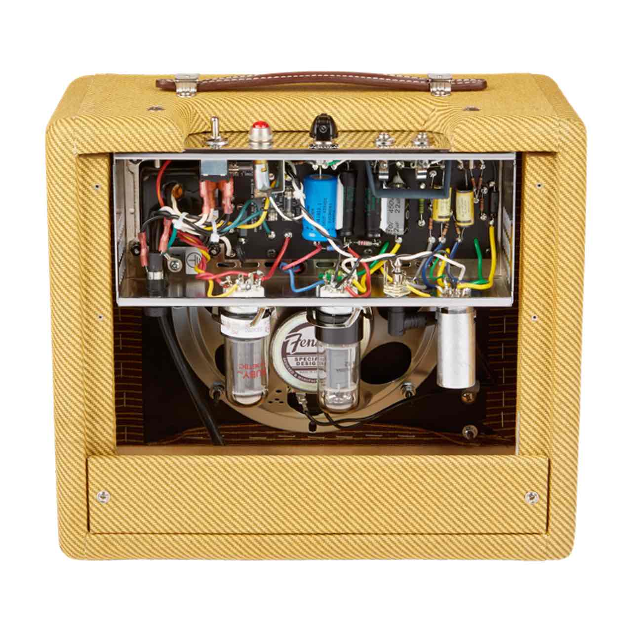ハンドワイヤード・サーキットには、真のフェンダートーンを再現する伝説のイエロー・カップリング・キャパシタが採用されており、