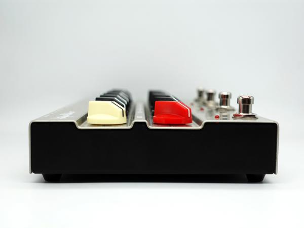 ギターケースのポケットにいれて持ち歩いたり、エフェクトボードに組み込むのにも最適なサイズと形状だ。