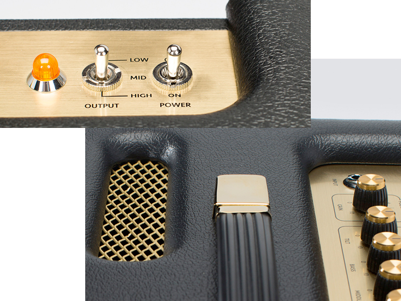 新開発のパワーリダクション技術「Powerstem」により、サウンドの質感への影響は最小限に、小規模なギグから自宅練習まで、使用環境に合わせた出力レベルの設定が可能。