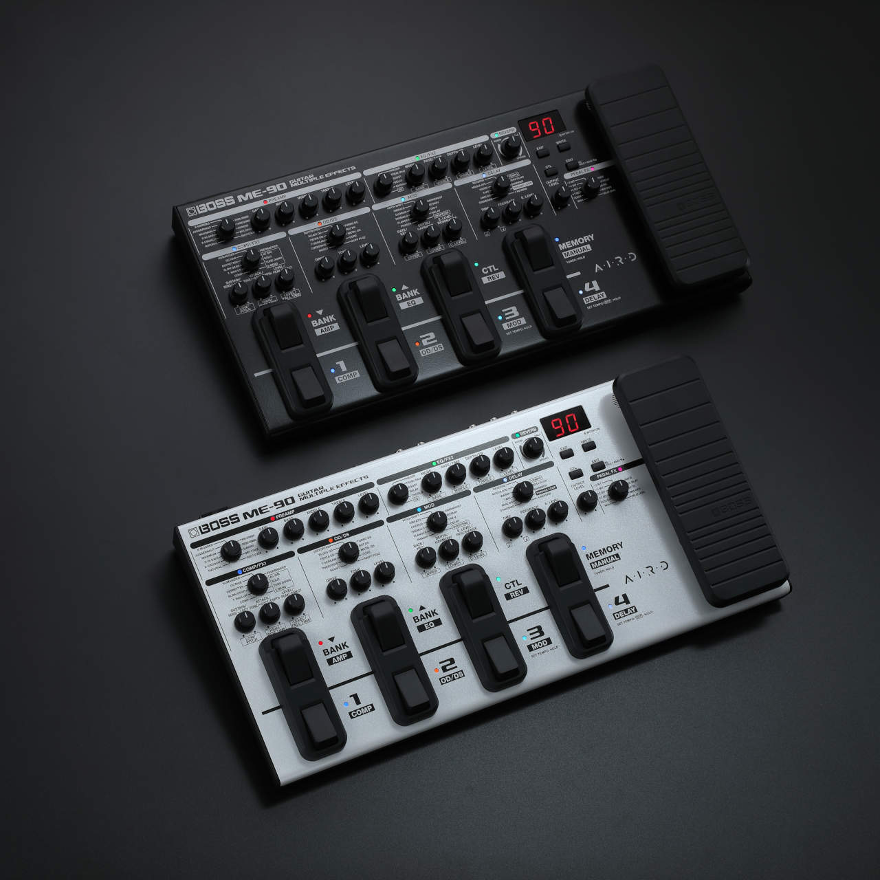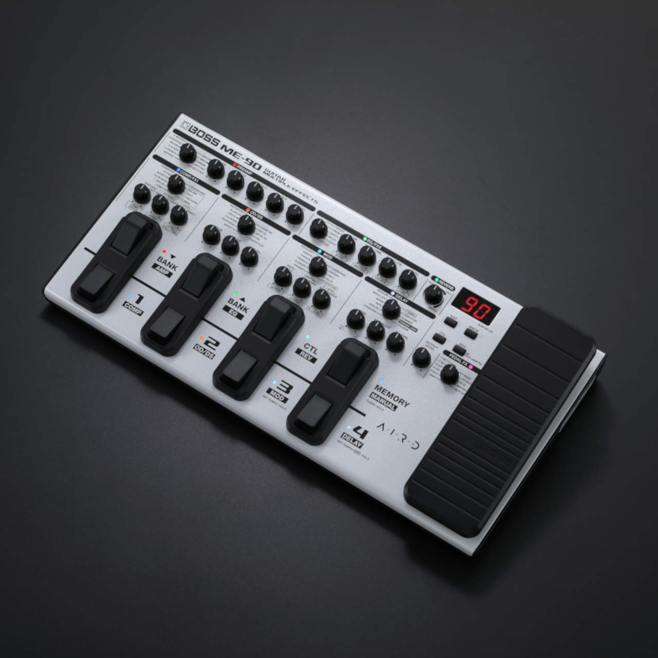 最新モデルのME-90はこれらのコンセプトを継承しつつ数多くのアップデートが施されています。サンプリング・レート48kHz、内部演算32bit float(浮動小数点)処理による優れた音質を実現。真空管アンプのサウンドと弾き心地をもたらすAIRDプリアンプと、最高峰のアルゴリズムで設計されたエフェクトを多数搭載し、プロ・クオリティのサウンド・メイクが可能です。