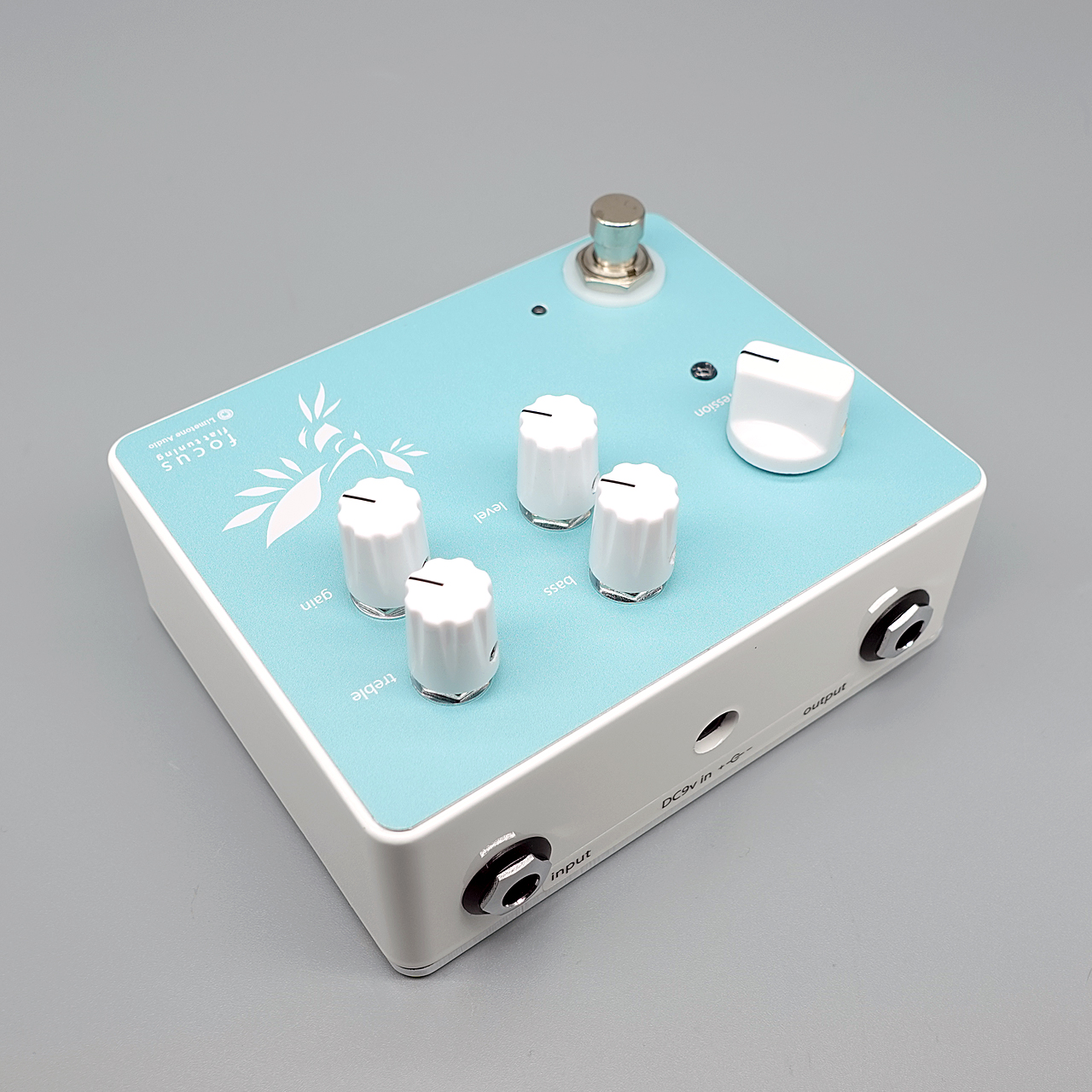 つまみは、compression、level、gain、treble、bassの5つ。スレッショルドやレシオ、アタックタイム、リリースタイムといった概念を取り払い、コンプレッション設定~レベル調整~音色補正という3ステップで直感的に音作りが可能です。