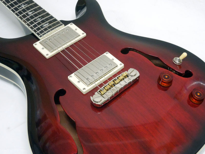 オール・マホガニー・ボディのホロウ構造を採用し、ウォームで鳴りの良いトーンを実現しています。22フレット仕様のワイド・ファット・ネック、PRSアジャスタブル・ストップテイル・ブリッジ、58/15 "S"ピックアップといったスペックで、ビッグでクリア、バランスの取れたトーンが特徴です。
