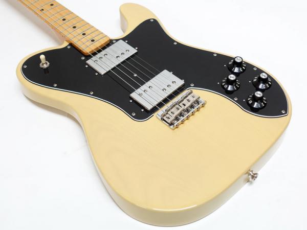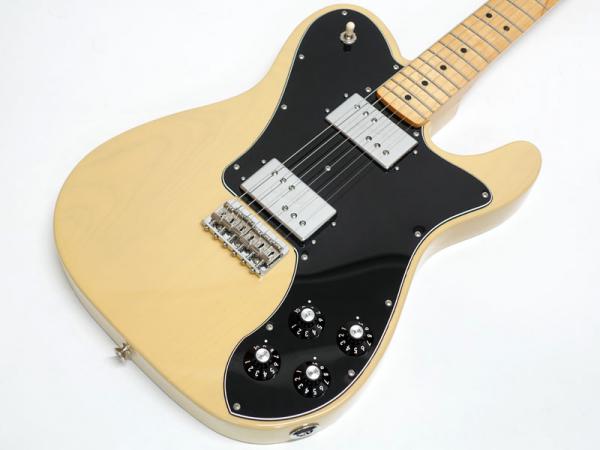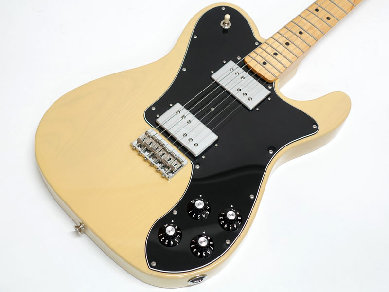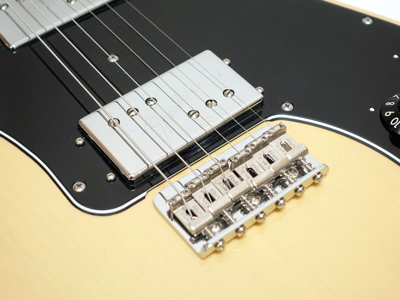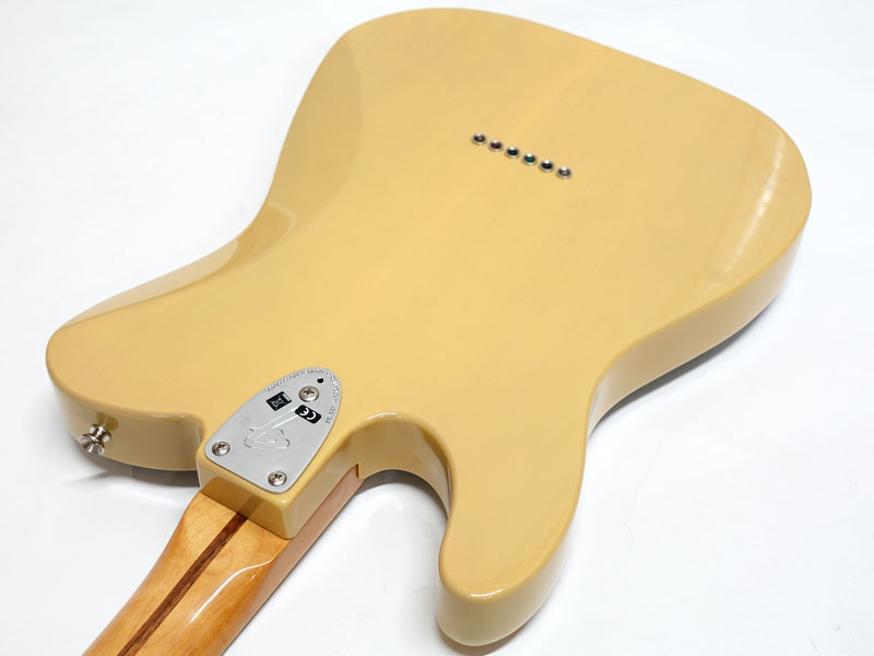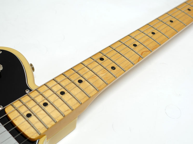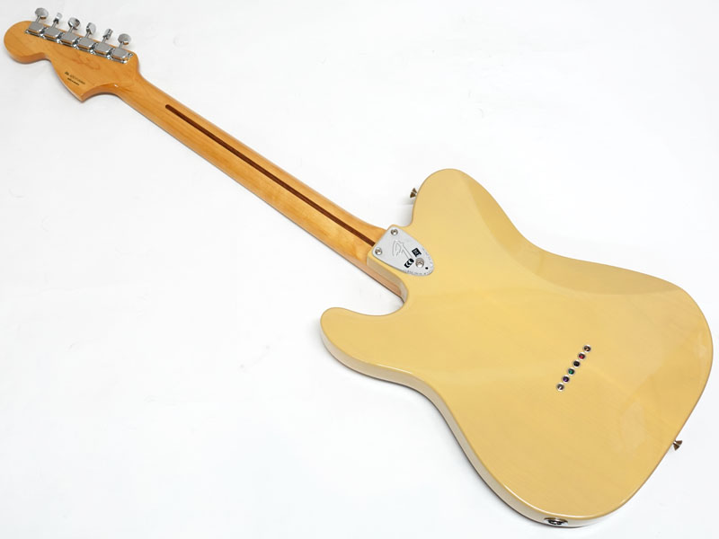 アルダーボディ、メイプルネック、メイプル指板。Thin "C"シェイプの薄めのネックに9.5インチラジアス、3点止めジョイントにヴィンテージスタイルのストリングスルーボディ式の6サドルハードテールStratocasterブリッジなど70年代の仕様で弾きやすいテレです。