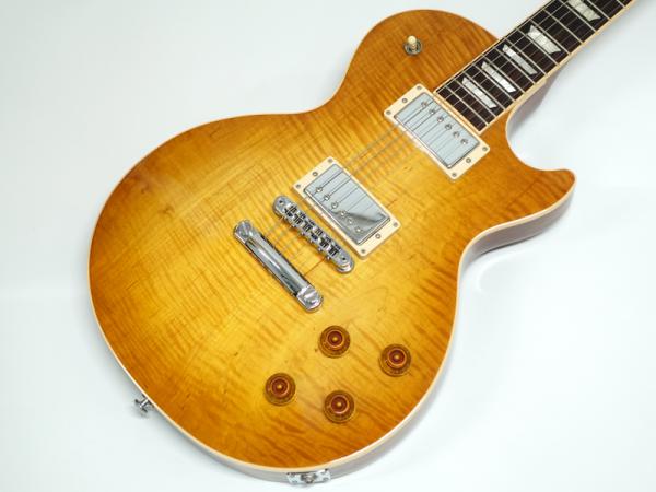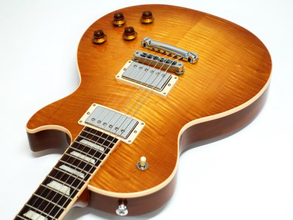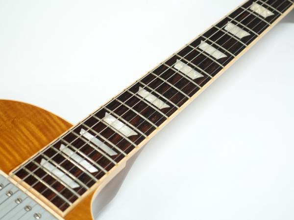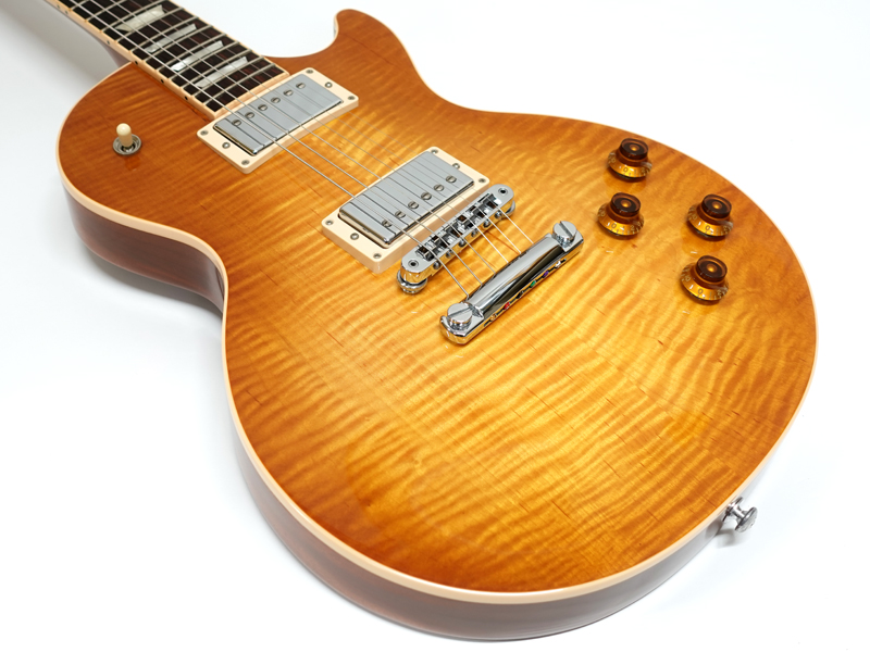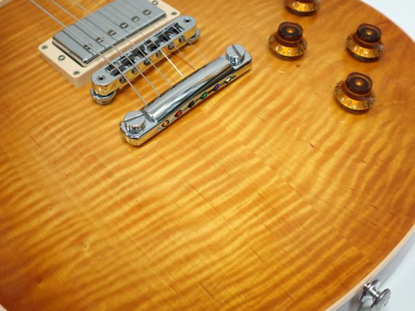 美しいアーチに仕上げられたメイプルトップにマホガニーバック、妥協することなく仕上げられたマホガニーネックにコンパウンドラディアスが施されたローズ指板。