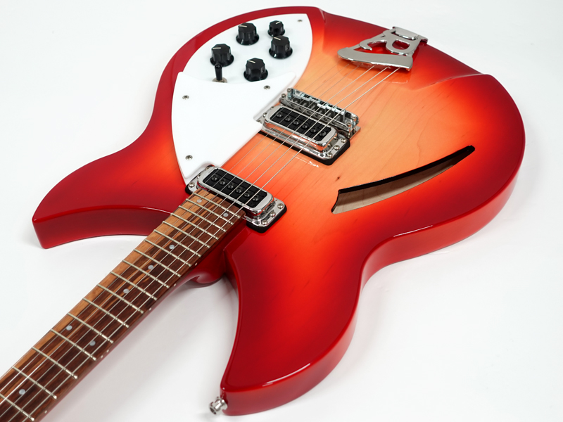 シングルピックアップでメイプルボディ、キンキンなイメージのサウンドですが、セミホロウ、リッケンならではのつくりで