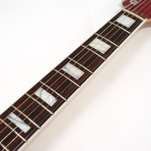 メイプルネックにエレガントなバインディング加工が施されたローズウッド指板、パーロイドのブロック・インレイとマッチングヘッドも特徴です。ラウンドボードのローズ指板にビンテージRの指板ラジアス、Vintageスタイルのフレットと60sのヴィンテージライクな仕様を採用。