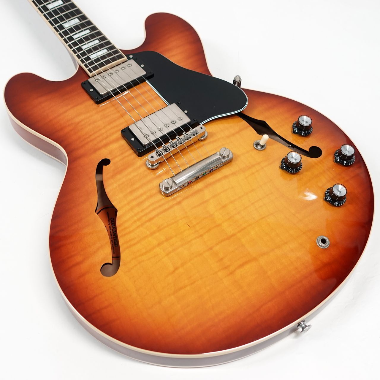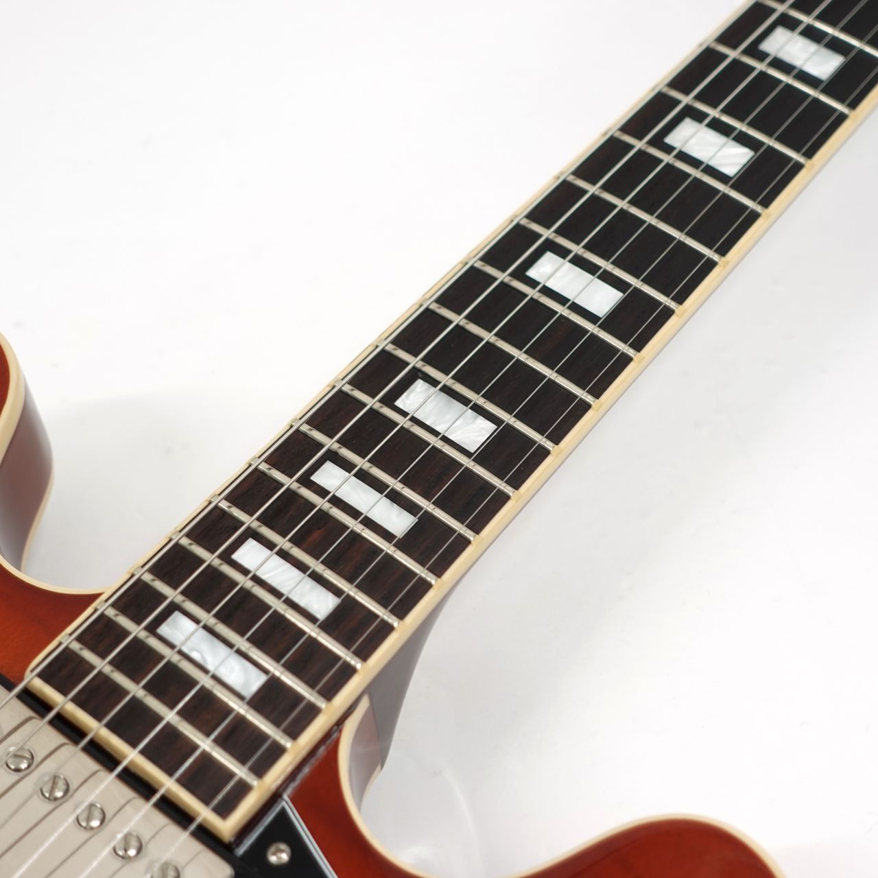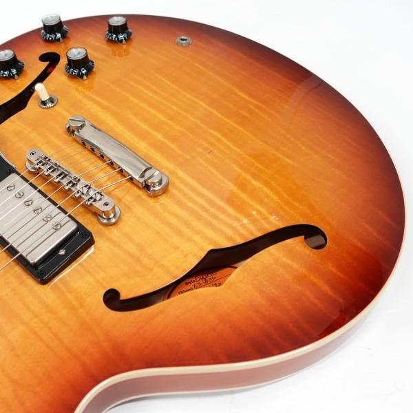 メイプル・センターブロック、クオーターソーン・アディロンダック・スプルース・ブレーシングを擁し、艶のある粘りと素直に伸びるサスティーン。ギブソンセミアコの魅力を堪能できます。