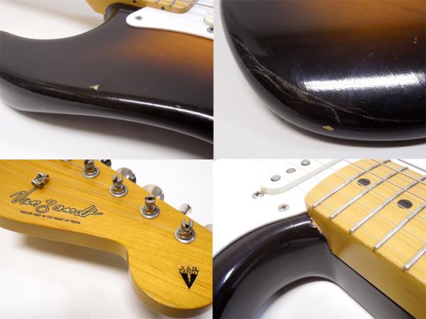 フィニッシュはオールラッカーのフェイド3トーンサンバースト仕上げですが、経年による退色で2トーンサンバーストのようになっており、また材と塗装の収縮によるウェザーチェックが全体に入りビンテージのような風合いが渋すぎます。