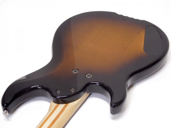 アルダーボディにボルトオンされたネック、立ち上がりが早くメリハリある音を奏でます。メイプルにナトー5pcsを組み合わせ強度は抜群、ネックトラブル予防・防止策がされたのは嬉しい仕様。斜めにカットしたボディ底部から45°の角度で弦を通すストリング・スルー・ボディ構造を採用。サドル直下から弦を通す従来の裏通し方式に比べ、弦振動のロスを大幅に軽減。弦振動をより多くボディに伝え、かつてない表現力に溢れたサウンドを実現しています。ナット材にフレット線材と同じ洋白を採用し、シャープでクリアな弦振動を実現しています。ブラス製半円型サドルなど、弦振動のエネルギーをよりロスなくボディに伝える構造のビンテージ・プラス・ブリッジを搭載。輪郭のはっきりしたディープな重低音を実現。さらにテンションも安定しています。
