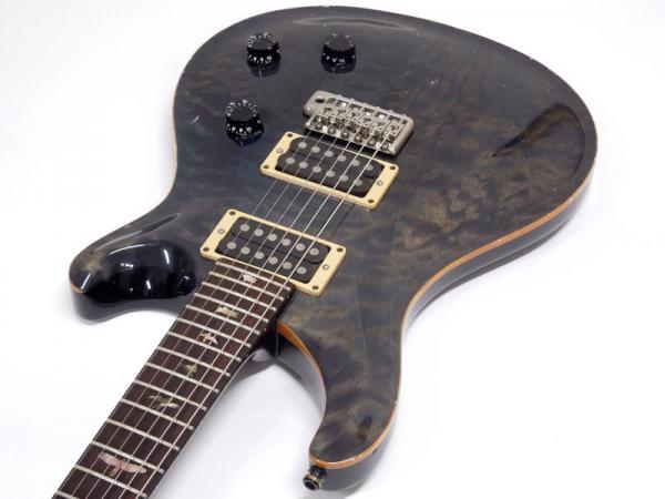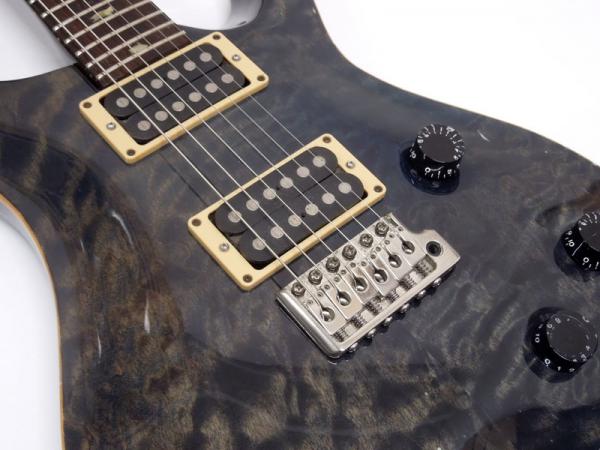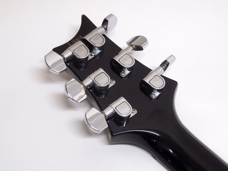 杢目の出たアーチトップのフィギャードメイプルトップ、マホガニーボディ、マホガニーネック、ローズウッド指板。現行でのPattern Thinシェイプに近い薄めで弾きやすいネック、24フレットにバードインレイがPRSらしさ満点です。