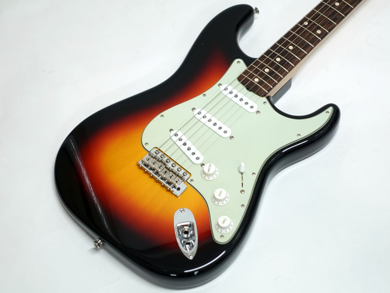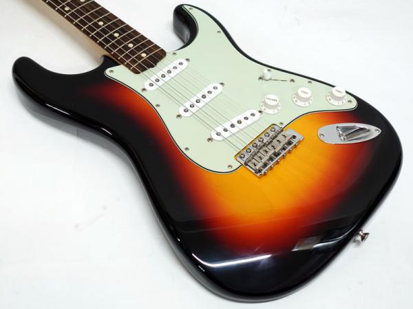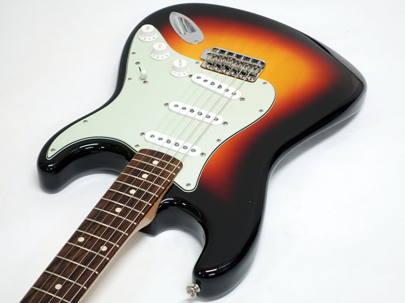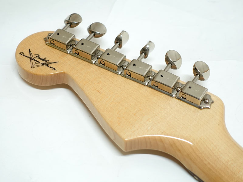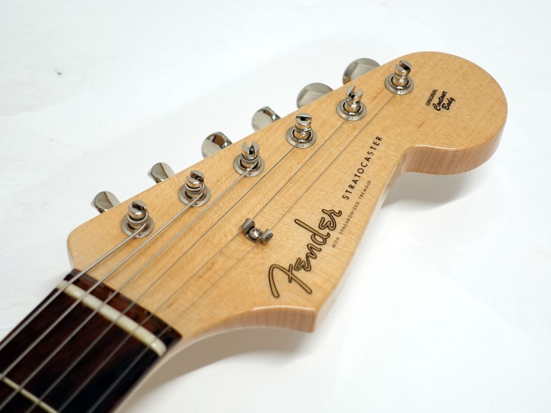 本機は2ピースアルダーボディに柾目メイプル1ピースネック、スラブボードのローズウッド指板を採用した、現在もストラトキャスターの基本と言える60年のスペックを再現したカスタムショップ製モデル。NOS(New Old Stock)仕様のラッカーフィニッシュで仕上げられたボディから繰り出されるサウンドはクリアでダイレクトな生鳴りをしており一音一音のツヤ、芯を余すことなく体感して頂く事ができ、今後弾き込む事によってさらにしっかりと鳴っていってくれるであろう仕上がりとなっています。