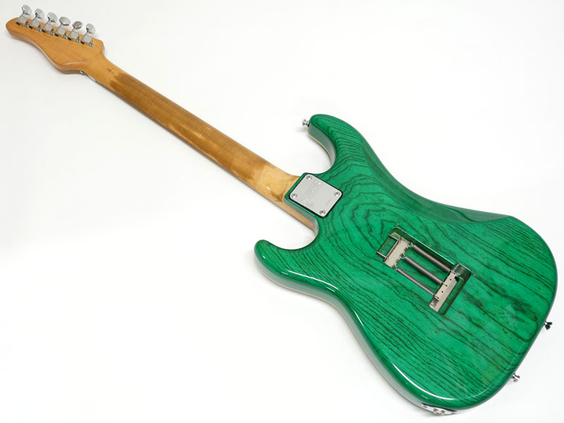 フレイムメイプルネック、メイプル指板、ロングスケールの22フレット。薄めのネックシェイプにスラントして取り付けされたネックプレート、そして木工精度の高さからくるストレスの無さで演奏性は抜群です。