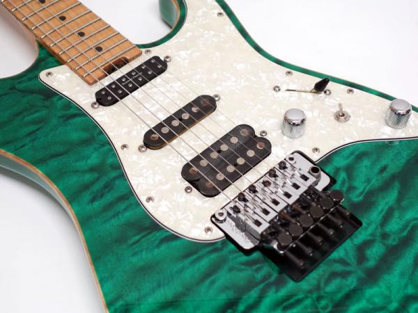 フロイドローズトレモロ搭載でアームプレイにも対応します。