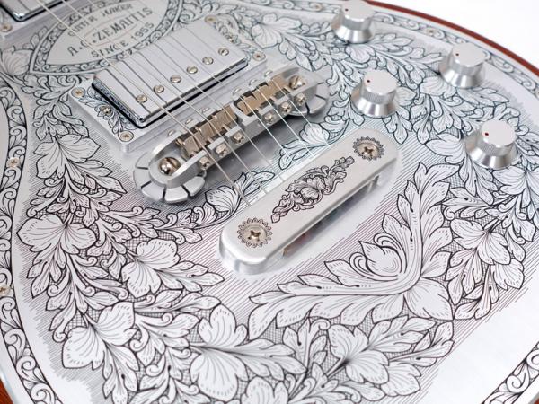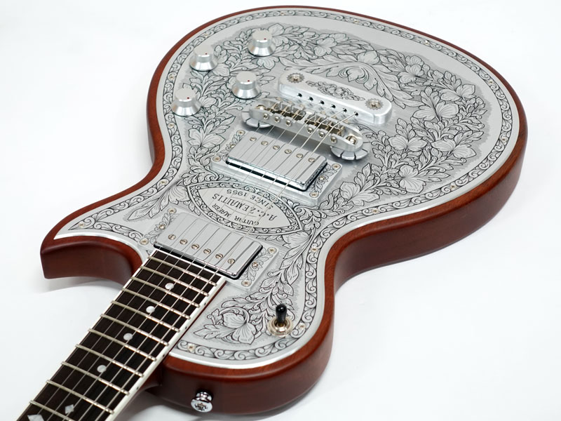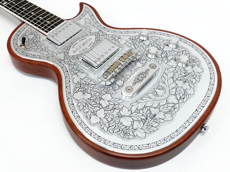 ボディとネックにはナトーを採用し、接着面積の広いオリジナルのセットネック構造により強固にジョイント。ジュラルミンのブリッジ、テールピースを相俟って豊かな鳴りとロングサスティーンを実現します。