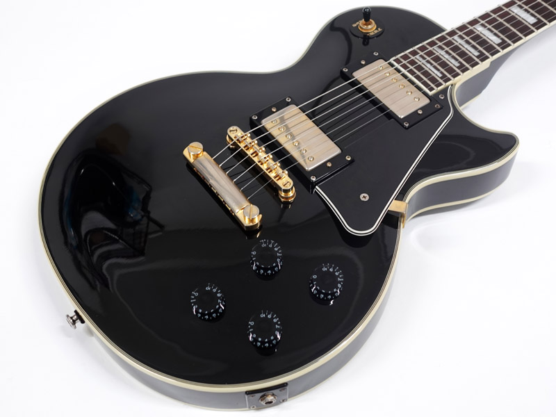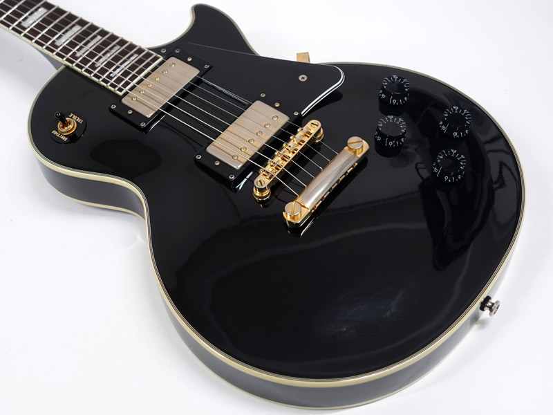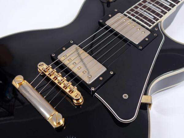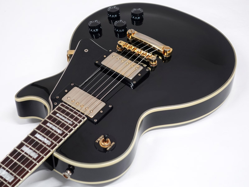 ゴールドパーツやポジションマーク、バインディングなどスタンダードとはひと味違った重厚なスタイル。きらめくロックなイメージの象徴的なブラックカスタム。
