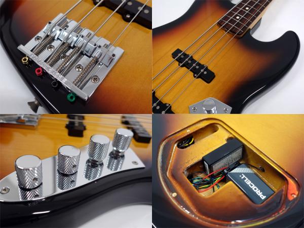 プリアンプを当店入荷後Bartolini XTCTに交換。ダイナミックなサウンドアレンジが可能なほか、2Band EQを搭載。2つのボリュームコントロールにはプッシュ=プル・スイッチポットを装備。フロントボリュームポットでアクティブ=パッシブ(プリアンプ・スルー)の切り替えを、リアボリュームポットではピックアップ接続をシリーズ(直列)とパラレル(並列)の選択ができる様になっています。通常のアクティブJBタイプのベースよりも格段に自由度とサウンドバリエーションを持たせています。
