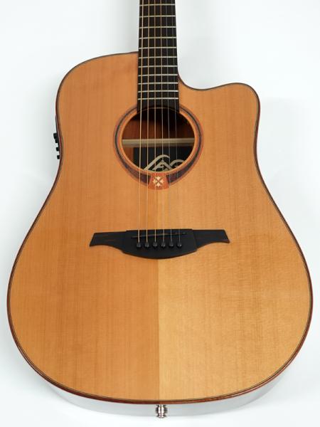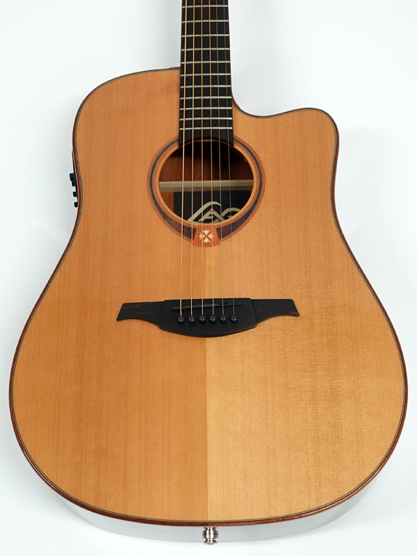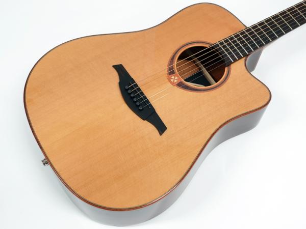 シダー単板トップのサペリボディ、ドレッドノートならではのダイナミックな響き。