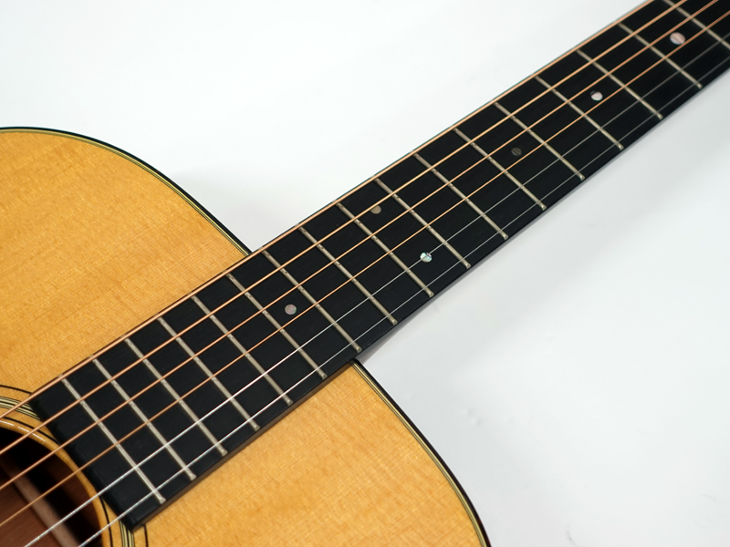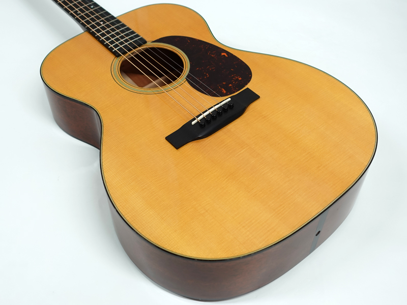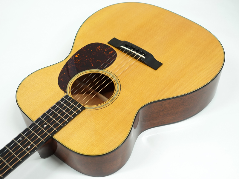 本器は、スプルース材トップにマホガニー材サイド&バックを合わせた000-18。44.5mmのナット幅にスキャロップド・ブレーシングなど、ヴィンテージ・マーチンさながらの仕様とルックスに仕上がっております。