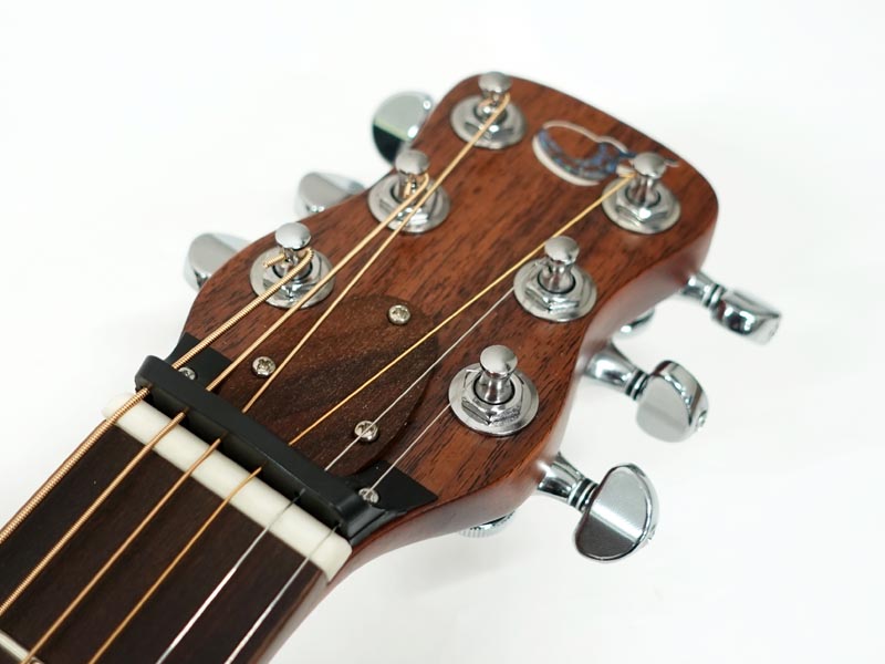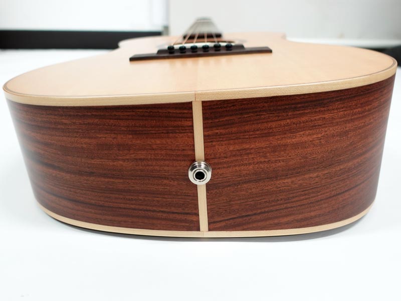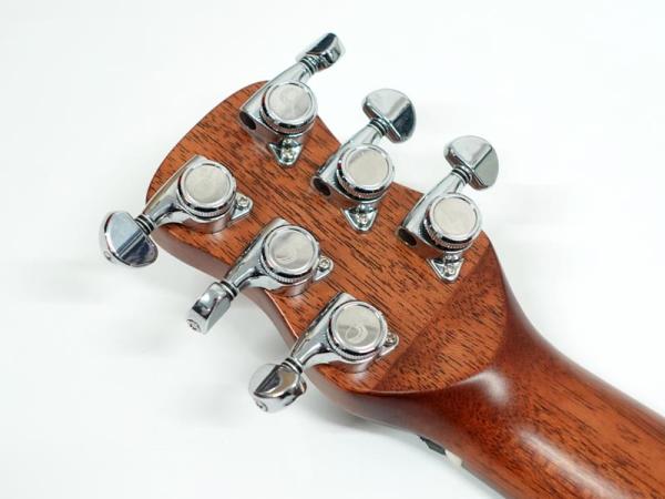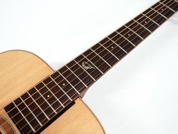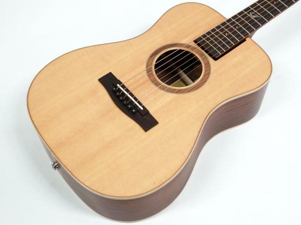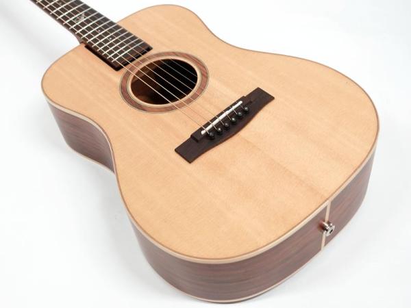 スプルース材単板トップとパーフェロー強化板サイド/バックの仕様で、ギブソンスケールに近い622.3mmスケール、フィンガーピッカーにも弾きやすい44.5mmナット幅の仕様。オヴァンコール材指板&ブリッジにカーボンファイバー補強と効きの良い2wayアジャスタブルロッドが仕込まれたアフリカンマホガニー材ネックと、強度とサウンドに拘った本格的なスペックが魅力となっております。