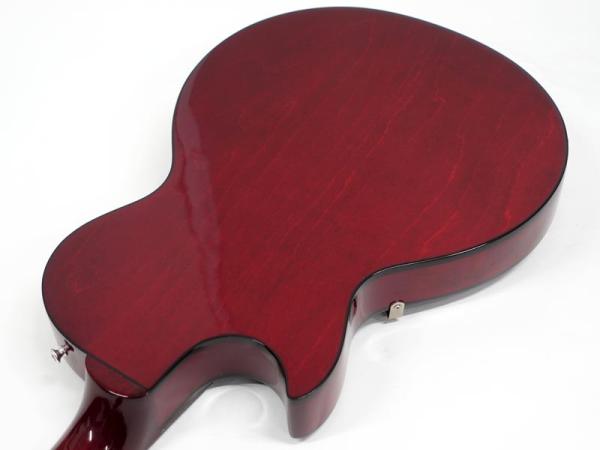 フラットなボディバックにアーチトップ、マホガニーのセンターブロックの完全なセミアコ構造にすることで小振りなボディながら豊かな生鳴りが引き出されます。また軽量でコンパクトなボディは非常に取り回しが良く演奏性が高いです。