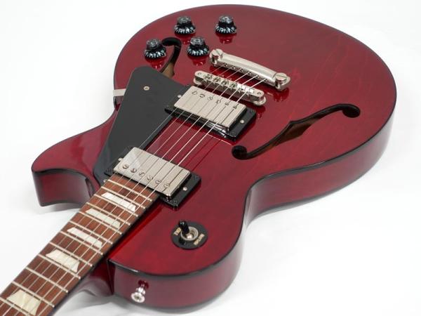 レスポールのルックスながらFホールの空いたセミアコ構造を採用した今までにないルックス!そのサウンドはレスポールともセミアコとも違う魅力的な出音です!