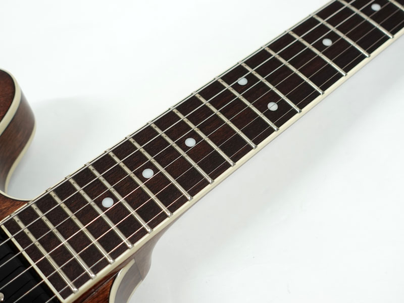 スリムなネックやフレットエッジの仕上げ、安定したクルーソンペグ搭載など、手に取りやすい価格帯ながらプレイアビリティに妥協のない拘りの仕上げです。