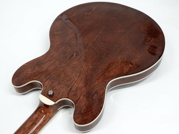 トラディショナルなFホールセミホロウメイプルボディ、メイプルセットネック、オバンコール指板。