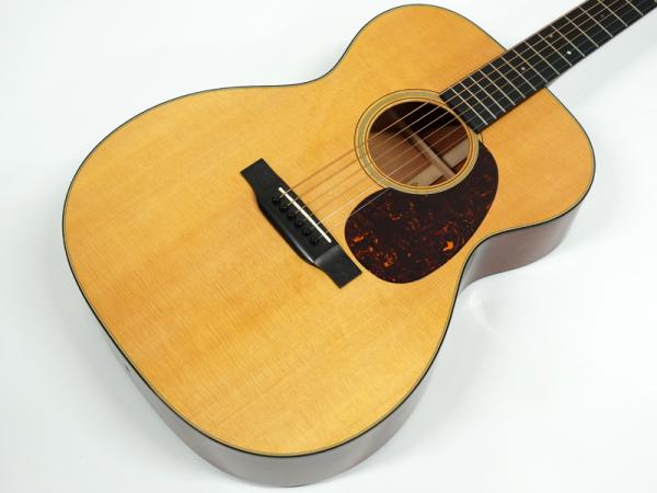 本器は、スプルース材トップにマホガニー材サイド&バックを合わせたの000-18。44.5mmのナット幅にスキャロップド・ブレーシングなど、ヴィンテージ・マーチンさながらの仕様とルックスに仕上がっております。