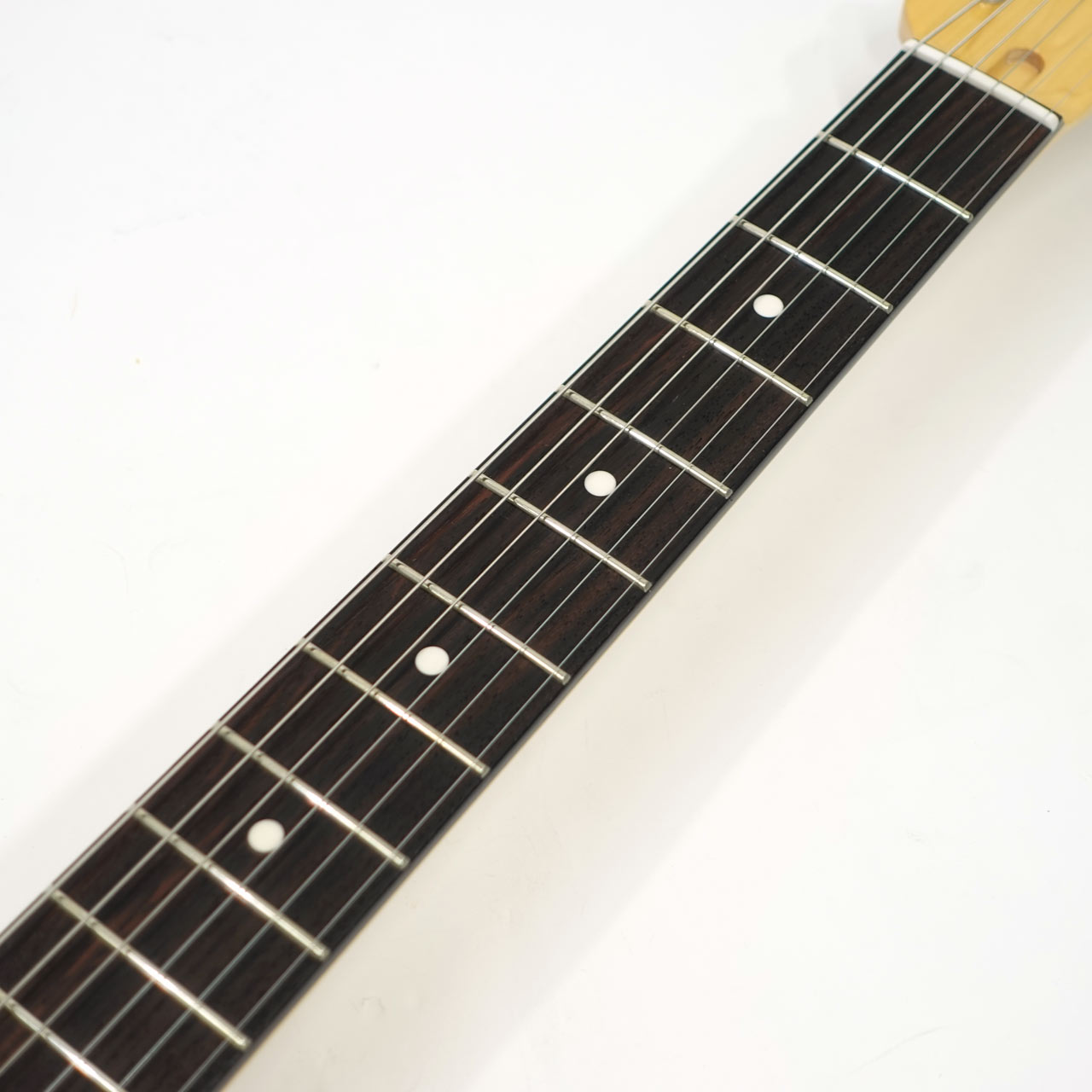 メイプルネック、ローズウッド指板。もちろんサークルフレッティング・システム採用、ネック裏のグリップ部は艶消し加工されており優れた演奏性を持ちます。