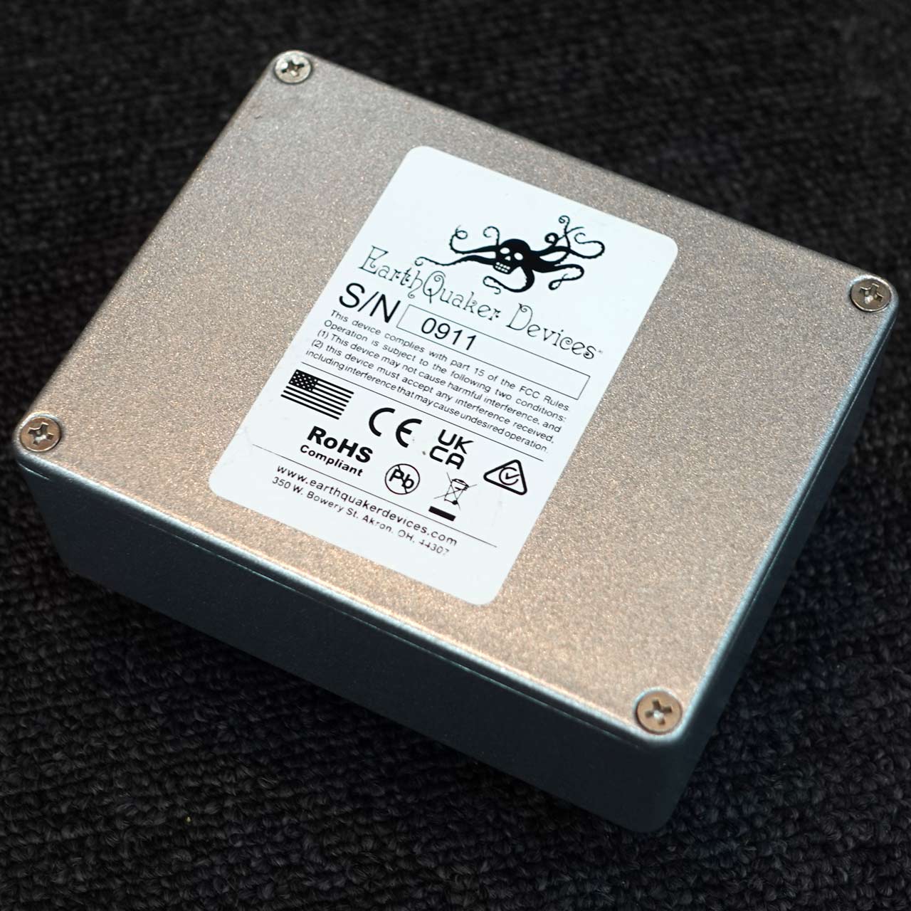 新しく採用した筐体の上にはSpeed、Intensity、Mix、Repeats、Time、そしてModulateとActiveフットスイッチを搭載し、あなたの夢のアンビエントの手助けをします。ディレイタイムを短く、Repeatsとモジュレーション部を高く設定した際の不思議な揺れはワイルドなコーラス系の効果をつくり、ディレイタイムをお好みで設定し、モジュレーションのタイミングを曲のテンポに合わせてリズミックにコードをかき鳴らしたりリフやソロを弾いたりも。ジェイミーが施したモジュレーション回路とこのペダルが奏でるディレイの可能性は無限大です。