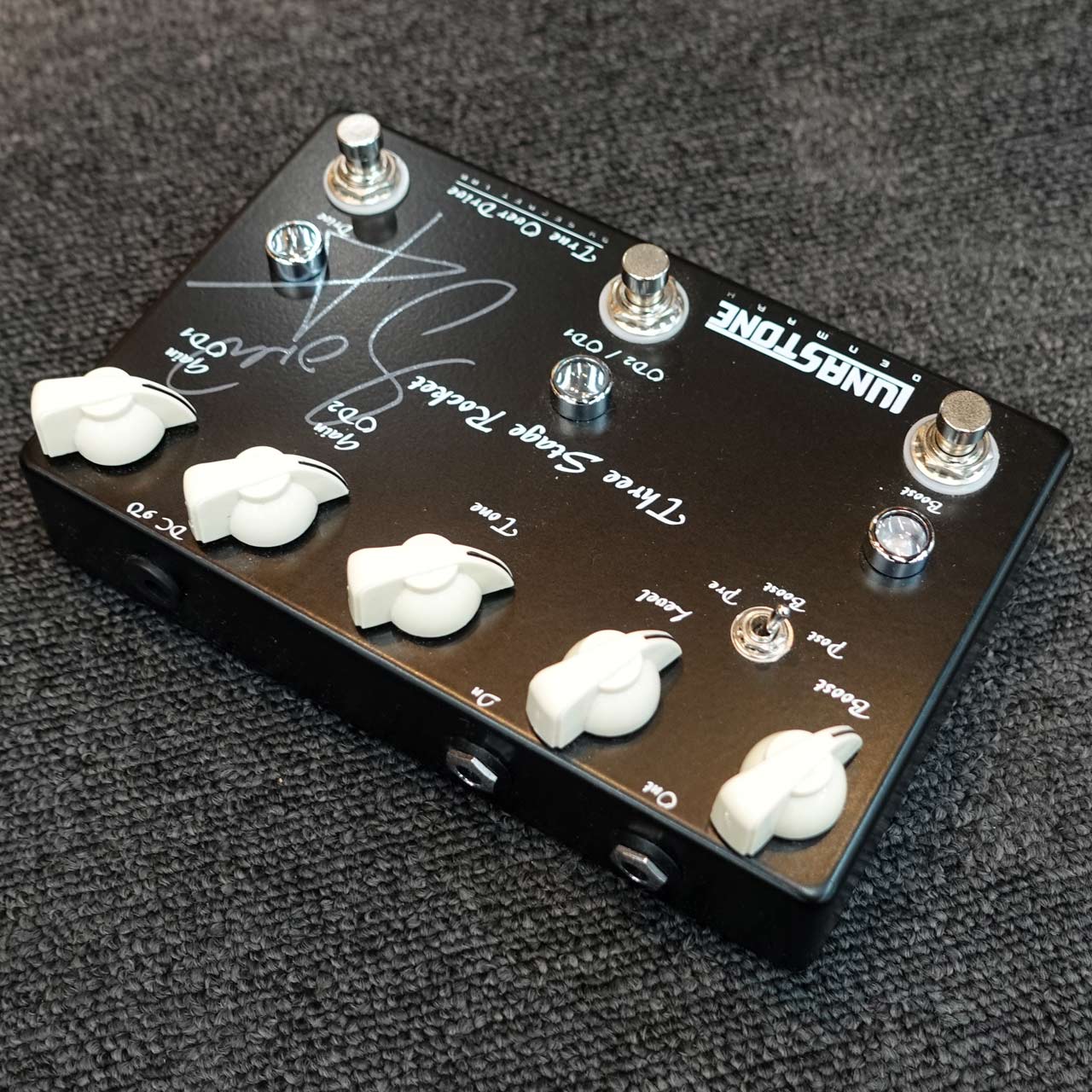 "Three Stage Rocket"は"Big Fella"の歪みを基に設計され、"Big Fella"同様にクリッピングダイオードを使用しない革新的な回路に基づいて設計されています。一般的なブティック・エフェクターのオーバードライブやディストーションとは異なり、どんなに高いゲイン設定であっても非常にクリアーで歪み過ぎない音楽的なドライブサウンドが特徴です。このピュアなサウンドは、実在するチューブアンプとほぼ同一といえるカスケード接続された複数のゲインステージによるものです。