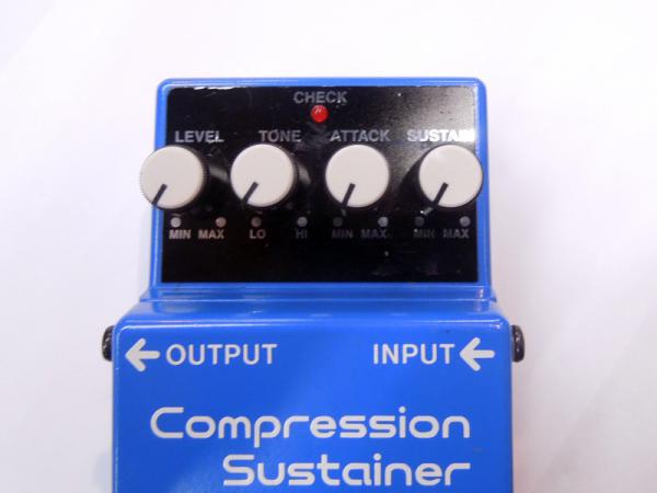 過大な入力信号を圧縮し、小入力を増幅することにより、音を歪ませずにサスティン(持続)効果が得られるエフェクター。粒立ちのよいカッティング・プレイやメローなギター・ソロなどに効果的。徹底したロー・ノイズ設計、音のこもりを解消するトーンつまみを搭載。
