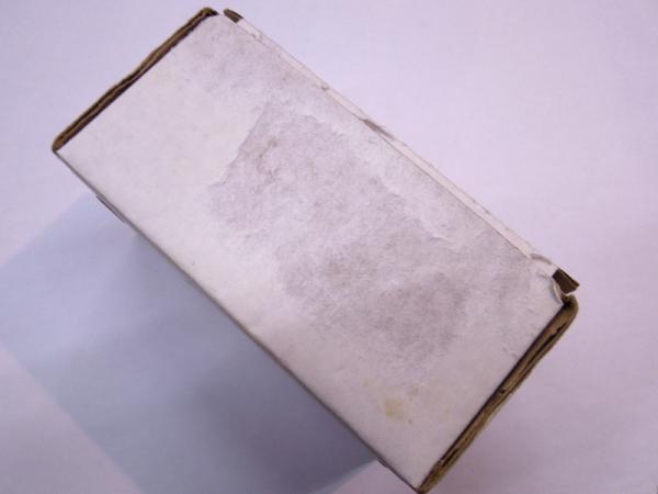 裏蓋を止めるネジが二つ欠品しています。打痕が一か所ございます。箱はシールが貼って剥がされた跡があります。