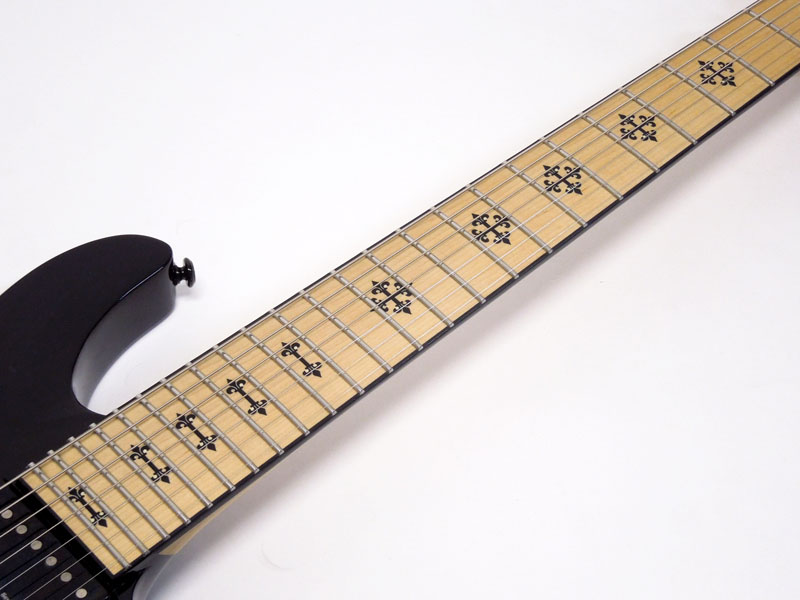 指板のメタルクロスインレイ、メタルのトラスロッドカバーなど特徴的な意匠が含まれます。