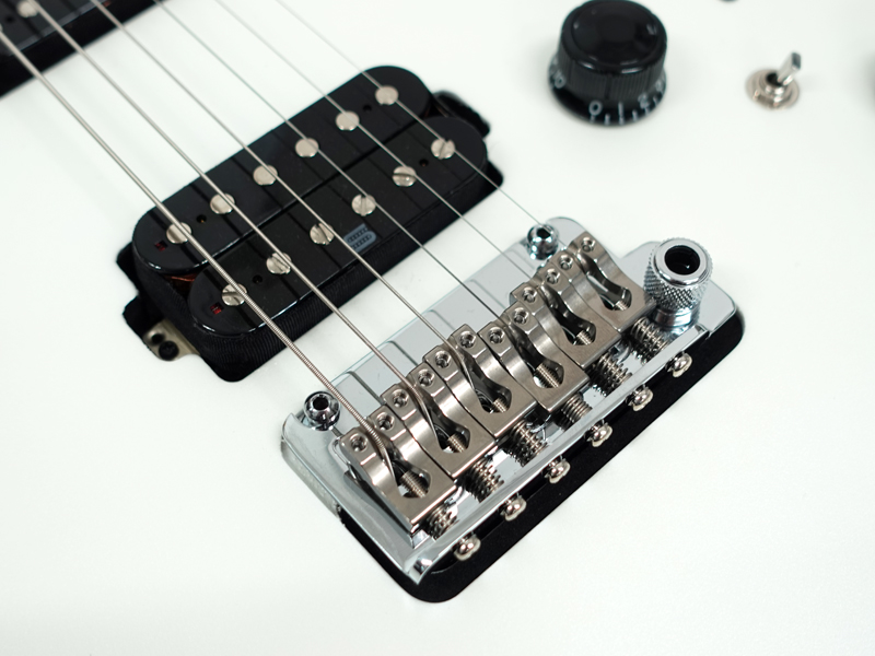 GOTOH製マグナムロックペグ、シンクロトレモロ、ステンレスフレット、ボディのコンターやネックジョイント部の球面仕上げ、蓄光素材のサイドポジションマークなど現代的な演奏性の高さを求めてひと手間ふた手間かけた拘りの感じられる一本。
