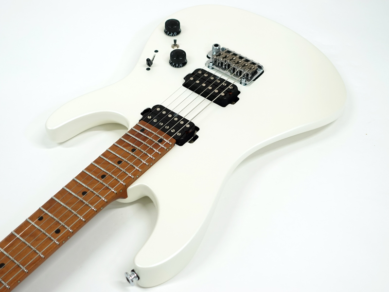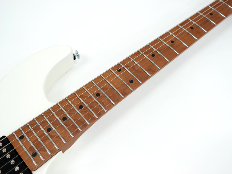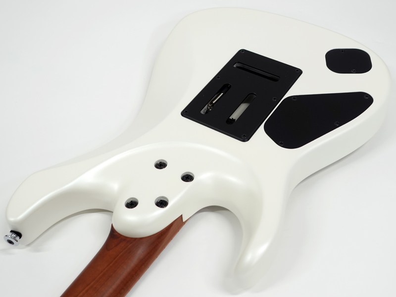 オリジナルのボディ形状を採用したアルダーボディ、エステック処理を施したローステッドメイプルネック&指板、ネック形状は従来のネックより少し厚く設計、弾きやすいオイルフィニッシュ仕上げにしています。Ibanezの薄ネックが苦手な方にも手に馴染むような適度な厚さです。
