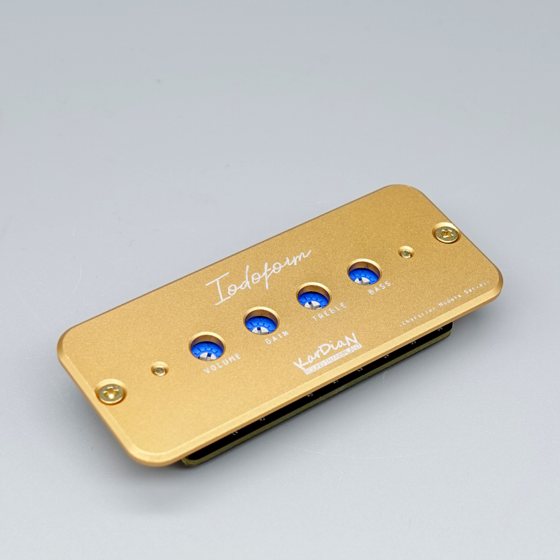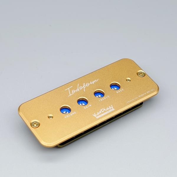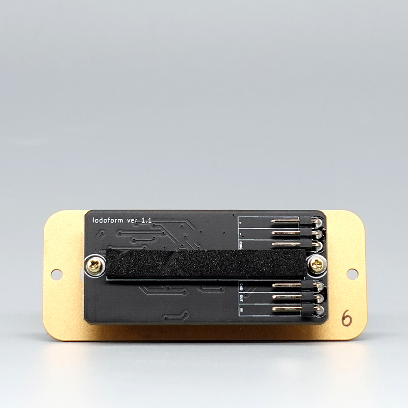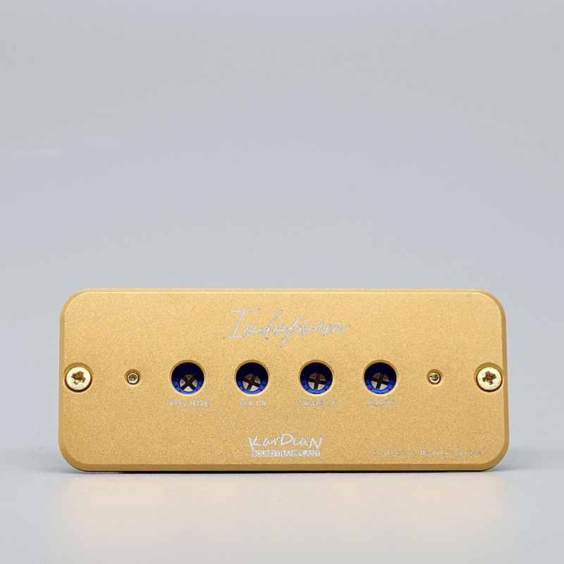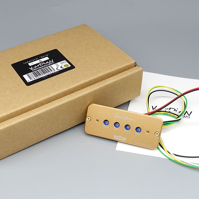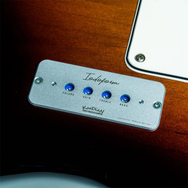 "Iodoform / ヨードホルム"はオンボードプリアンプとは異なります。プリアンプとして音の増幅、味付けをおこなうのではなく、ギター本来のサウンドやトーンをキャラクターレベルでアクティブに変化させるという視点から開発がスタートしました。オンボードプリアンプとは違いベースやトレブルの2EQ、ゲインレベルを予めセッティングし演奏中のオンオフのみでエフェクティブなサウンドを作り出すことが可能です。例えばブルース、ジャズマンのような、ギターとアンプだけでサウンドを奏でる人には、以前の機材環境を保った状態でエフェクティブなサウンドが簡単に手に入るでしょう。またプリアンプとしてかけっぱなしで使うことももちろん可能です。ハードロックなサウンドが好みのプレイヤーであれば、強力な2EQによってギターをイコライジングし、アクティブ回路によって作られるローインピーダンス信号によってノイズレスなサウンドを生み出すことも可能です。