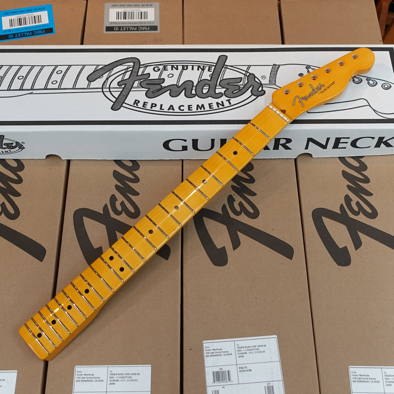 フェンダーの純正交換用ネックはギター本体に取り付けられていないため、ナットスロットは有資格者がカットする必要があります。