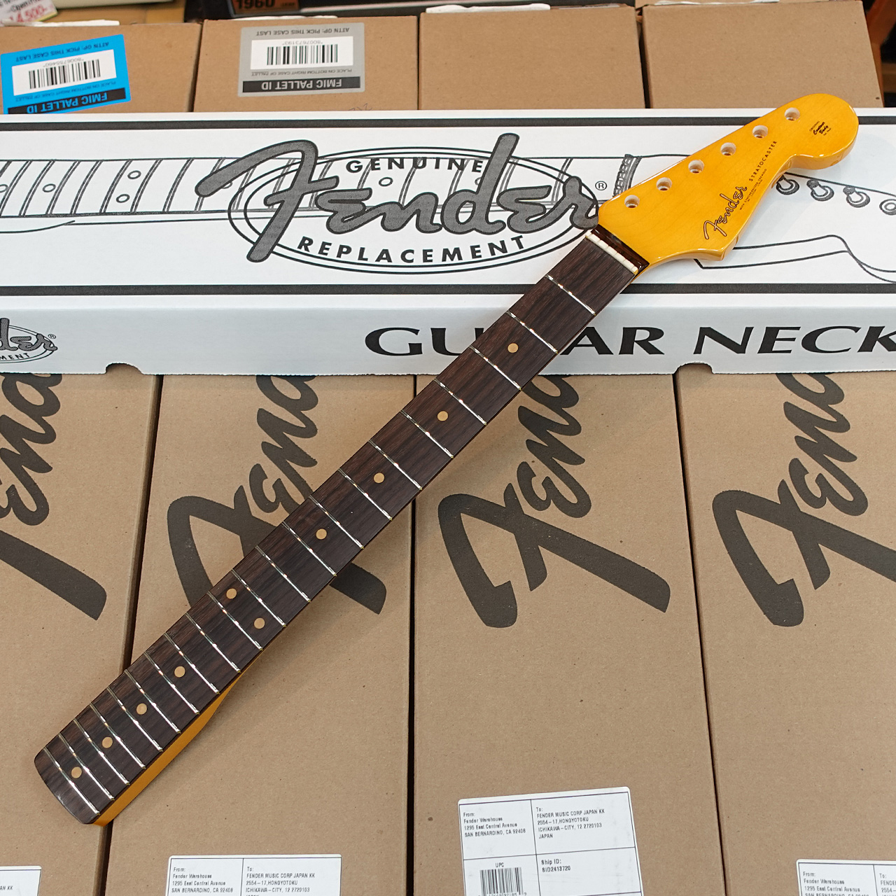 フェンダーの純正交換用ネックはギター本体に取り付けられていないため、ナットスロットは有資格者がカットする必要があります。
