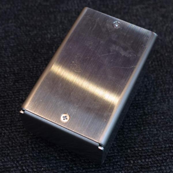 筐体は今までのアルミ削り出し筐体から、ステンレスの板金筐体に変更しました。今後の製品は基本この板金筐体を使用予定ですが、今回はFuzzらしい筐体の安定感も出したかったため質量の大きいステンレスをあえて使用しました。ボードを使わずフロアに直接ペダルを置く人でも安心して使える重量感だと思います。