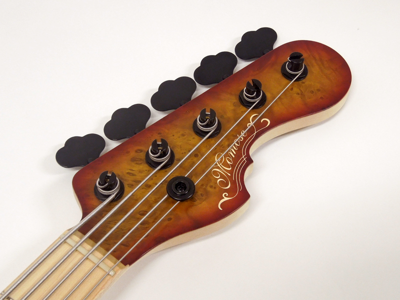 ピックアップにはMomose/VJ5、プリアンプにはAguilar OBP-2を搭載しておりアクティブでしっかり音作りをすることができます。