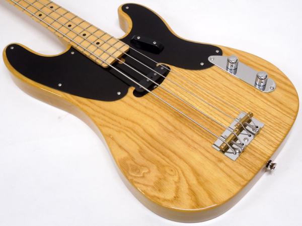 53年までのコンターの無いボディのプレシジョンベースを再現したモデルはアッシュボディにメイプル指板の組み合わせでシングルコイルのGROOVE50'S OPを搭載しています。ヘッドシェイプ、ブラックガード、クローム製のコントロールパネルとノブ、ジャックなどテレキャスターと共通する部分も多くテレキャスターベースとも呼ばれています。