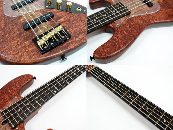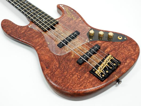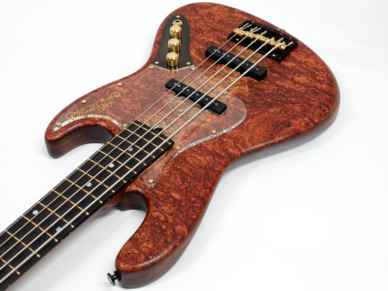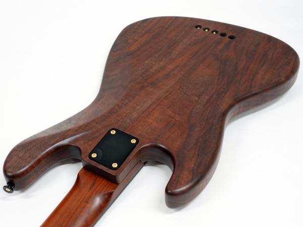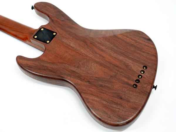 組み合わせるボディバックには北米原産のウォルナット材を贅沢に1ピースボディにて採用、重く硬質なブビンガ材が生み出すタイトな低音を適度に硬質なウォルナット材で支えることにて、より迫力のある正に重低音と言うべきエッジの効いた低音を奏でます。