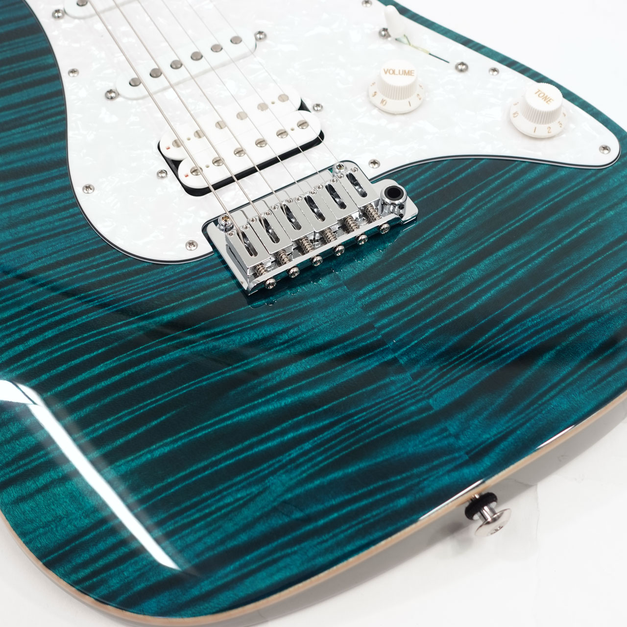 定番のフレイムメイプルトップ/バスウッドボディのコンビネーションに気温や湿度の変化に対する強い耐性、そして特有の鳴りも持ち合わせるローステッドメイプルネックを採用。指板にはパーフェローを採用したコンパウンドラジアス仕様。ヘッドストックにもフレイムメイプルトップをあしらったマッチングヘッド仕様です。